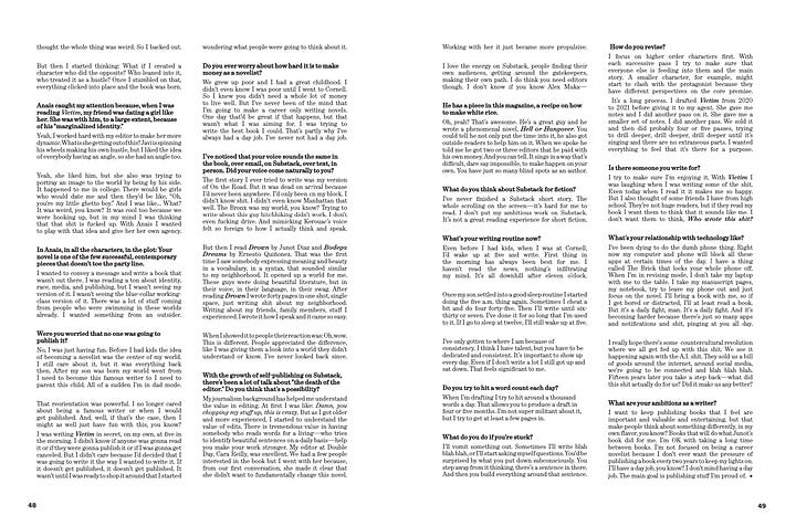 If you’d like to get your hands on the print issue, you can subscribe via Substack or send $20 here. Shipping is included in the price; we’ll also have them primed and ready for pick up at the ever-growing launch party this Saturday.